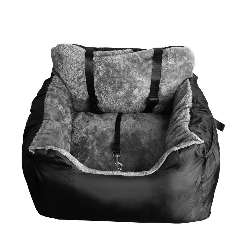 Plush and cosy dog car booster seat for small dogs and cats. Features a safety leash, storage pocket, non-slip base, and waterproof liner for secure, comfortable, and mess-free travel.