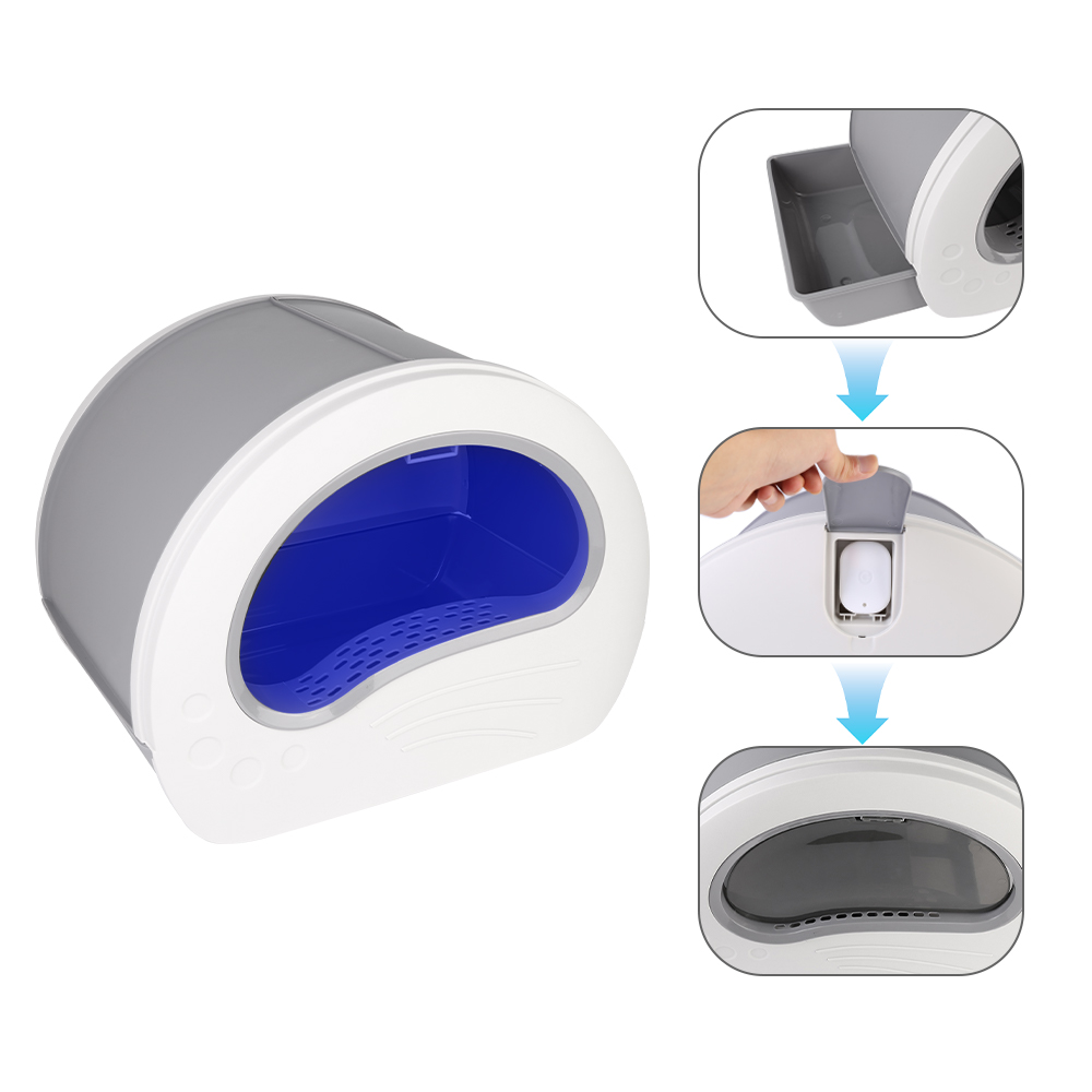 Large Cat Litter Box Anti-Splashing Cat Pan Drawer Cat Potty Tray with Sterilizing Light – Grey